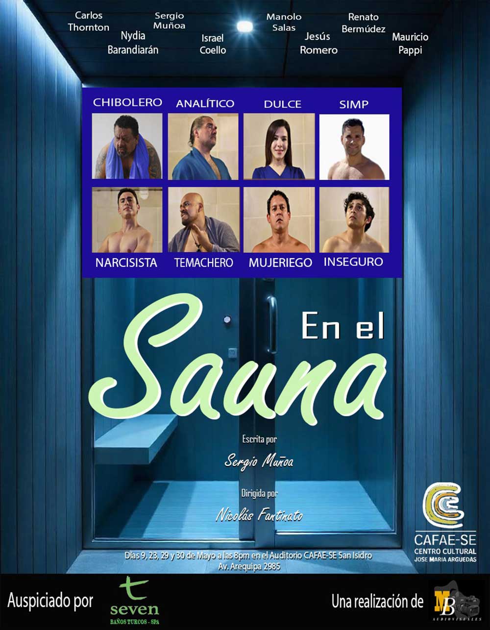 La propuesta gira en torno al universo interior de los hombres y sus formas de afrontar la vida, los vínculos y los silencios emocionales. A través de una conversación entre siete personajes, la obra pone en escena distintas formas de ser y sentir, mostrando la complejidad que a menudo se esconde bajo capas de orgullo, humor o aparente indiferencia. En el Sauna busca abrir un espacio escénico donde los hombres también puedan ser escuchados.